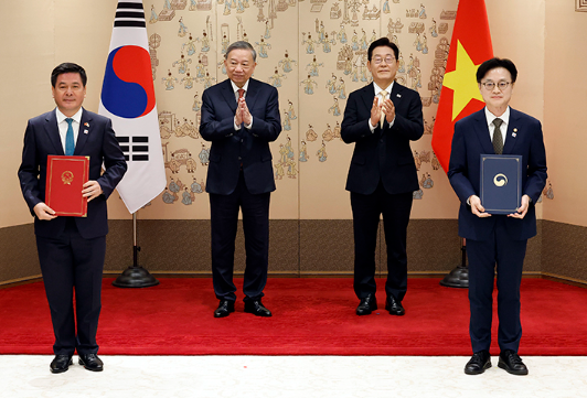 The Ministry of Trade, Industry and Energy announced on the 11th that a Memorandum of Understanding (MOU) on renewable energy cooperation was signed in the presence of the two leaders immediately following the South Korea-Vietnam summit held on the occasion of Vietnamese Party Secretary General Lam’s state visit to South Korea.