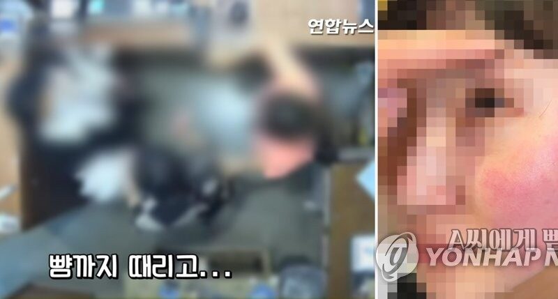 This blurred surveillance footage, obtained by Yonhap News TV from the victim’s family on April 20, 2021, shows the scene of an incident in which Xiang Xueqiu, the wife of Belgian Ambassador to South Korea Peter Lescouhier, allegedly assaulted two employees at a local clothing store. (Yonhap)hide caption