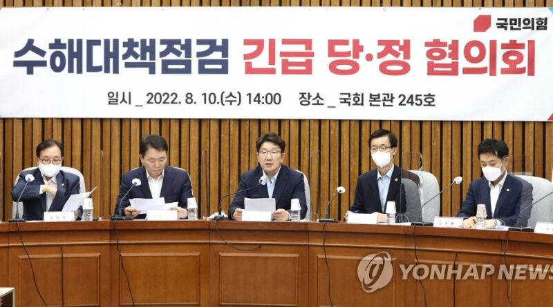 SEOUL, Aug. 10 (Yonhap) — The ruling People Power Party (PPP) and the government agreed Wednesday to consider designating areas that were hit by heavy rains as a special disaster zone.