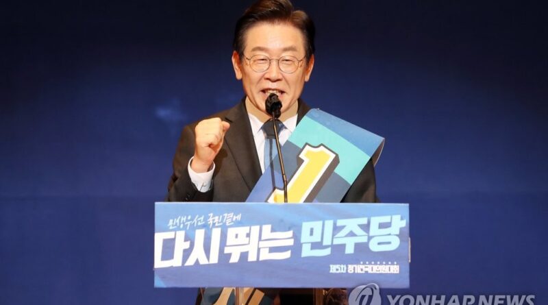 SEOUL, Aug. 14 (Yonhap) — Rep. Lee Jae-myung, former presidential candidate of the main opposition Democratic Party (DP), won the central Chungcheong provinces in an ongoing race for the new party leadership Sunday.