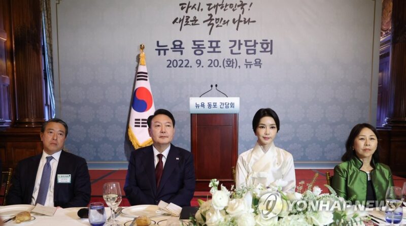 NEW YORK, Sept. 20 (Yonhap) — President Yoon Suk-yeol met with Korean residents in New York on Tuesday and promised to ask the U.S. government to ensure their rights and safety.