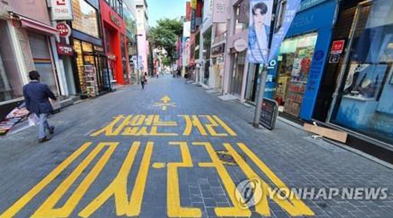 Myeongdong, a shopping district in central Seoul that is popular among tourists, is almost completely empty on Oct. 5, 2020. (Yonhap)