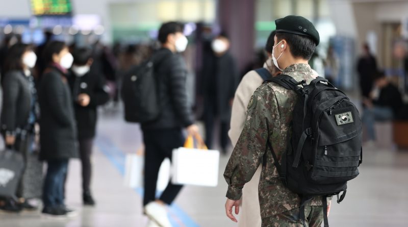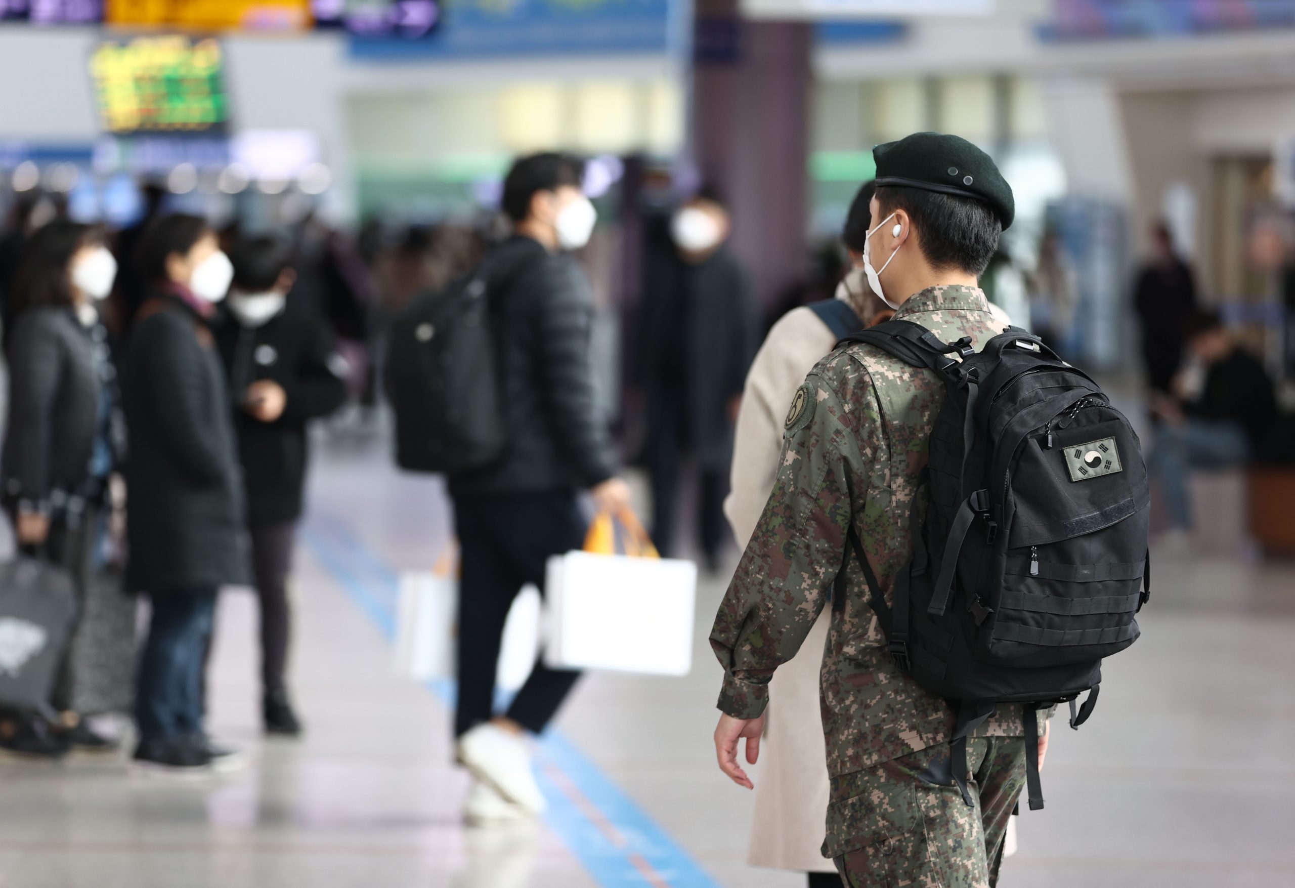 This photo, taken on Nov. 27, 2020, shows a soldier at Seoul Station in the capital city. (Yonhap)