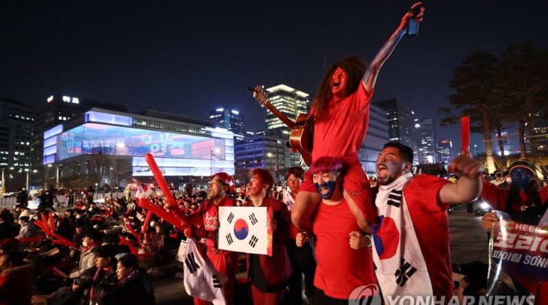 SEOUL, Nov. 24 (Yonhap) — More than 10,000 people were gathered at Gwanghwamun Square on Thursday to cheer for South Korea in their opening World Cup match against Uruguay.