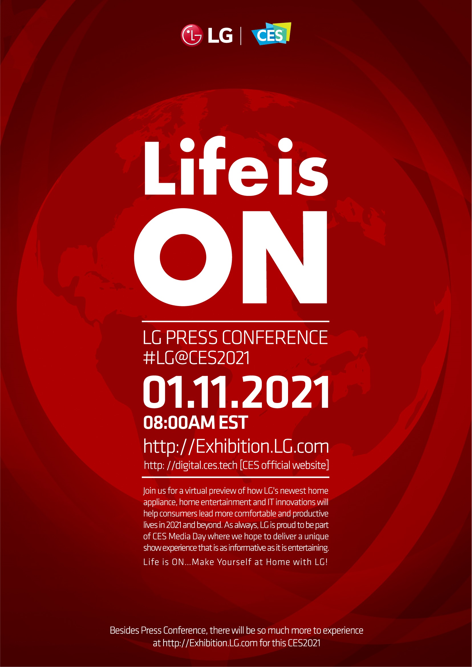 LG will hold a 30-minute virtual press conference at 8 a.m. Eastern Standard Time (EST) on Jan. 11 under the theme of “Life is ON — Make yourself @ Home” at the Consumer Electronics Show (CES) 2021 and will explain its latest innovations that can make people’s lives safe and comfortable amid the pandemic.’