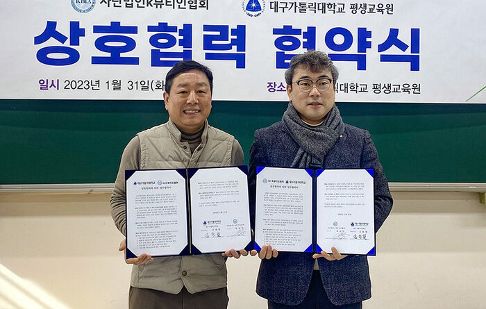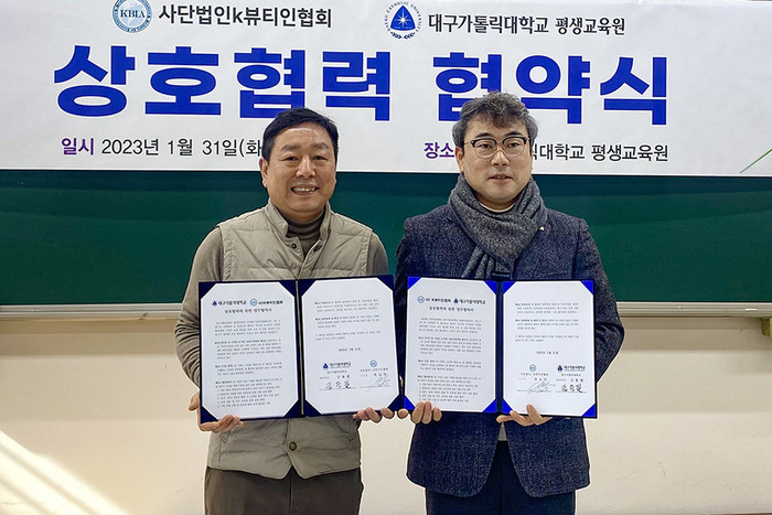 Daegu Catholic University signed a mutual cooperation agreement with the K Beauty Association to develop the beauty industry and foster professionals.