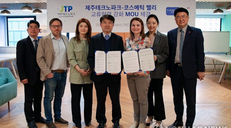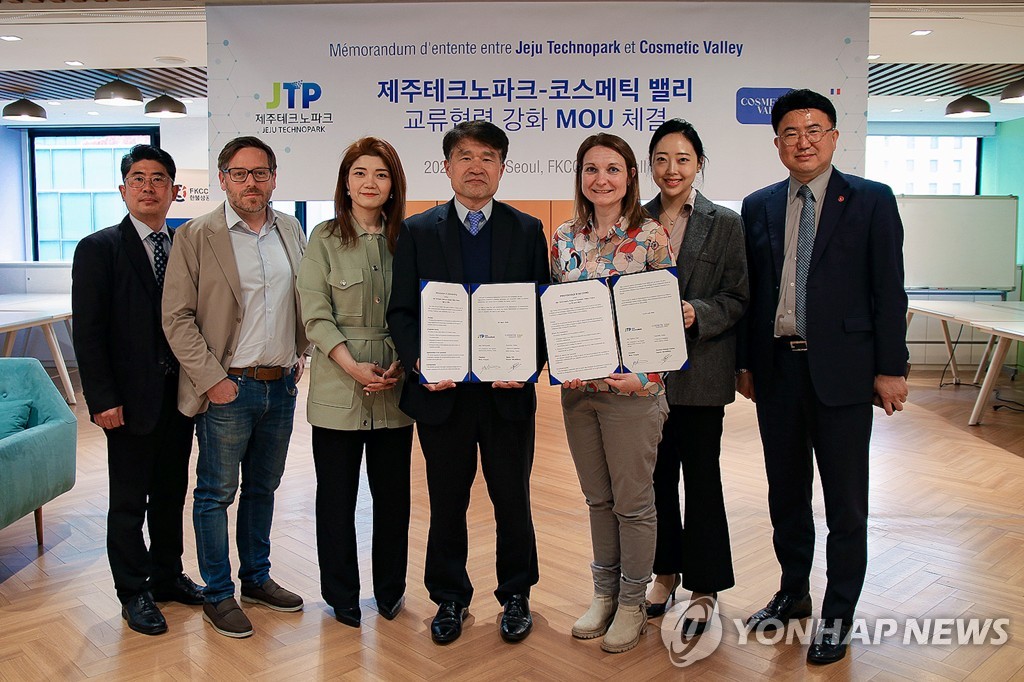 Jeju Technopark signed an MOU with Cosmetic Valley, a French beauty industry industry, academia, and research group, for a business agreement related to the cosmetics industry.
