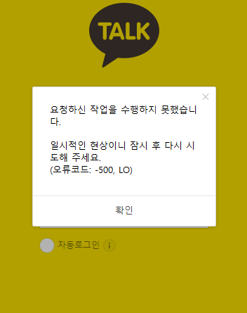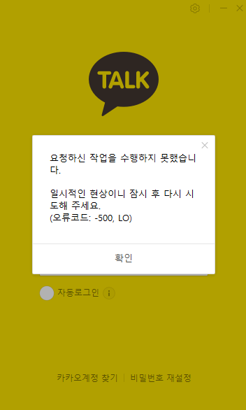 Around 1:30 p.m. today, an error occurred on both PisakaTalk (PC) and mobile KakaoTalk. ‘Could not perform the requested action. This is a temporary phenomenon, so please try again later (error code: -500, LO)’ and cannot log in.