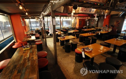 A bar in Hongdae, one of the busiest entertainment districts in Seoul, is nearly empty on Dec. 23, 2020, amid tightened restrictions on gatherings and events to prevent the spread of the new coronavirus. (Yonhap)