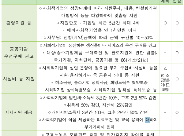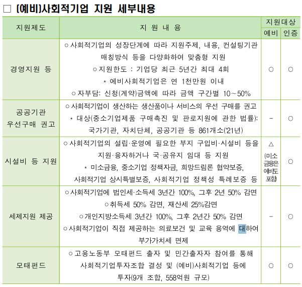 In order to be designated as a health and welfare type preliminary social enterprise, several requirements must be met in some of the projects under the Ministry of Health and Welfare (health, childcare and care, social welfare, housework and nursing, etc.).