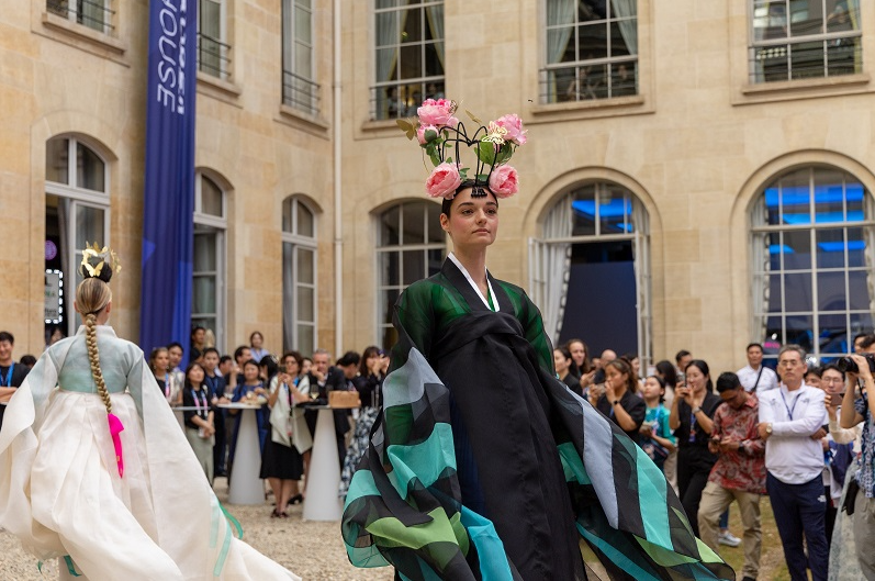 The Ministry of Culture, Sports and Tourism (Minister Yoo In-chon, hereinafter referred to as the Ministry of Culture, Sports and Tourism), in cooperation with the Korea Crafts and Design Foundation (Director Jang Dong-gwang, hereinafter referred to as Gong Jin-won), held ‘Korea Day’ in the garden inside the Paris Olympic Korea House (Maison de la Chemi) on August 1. ‘ As a preliminary event, a Hanbok fashion show was held to publicize the charm of Hanbok to the world.