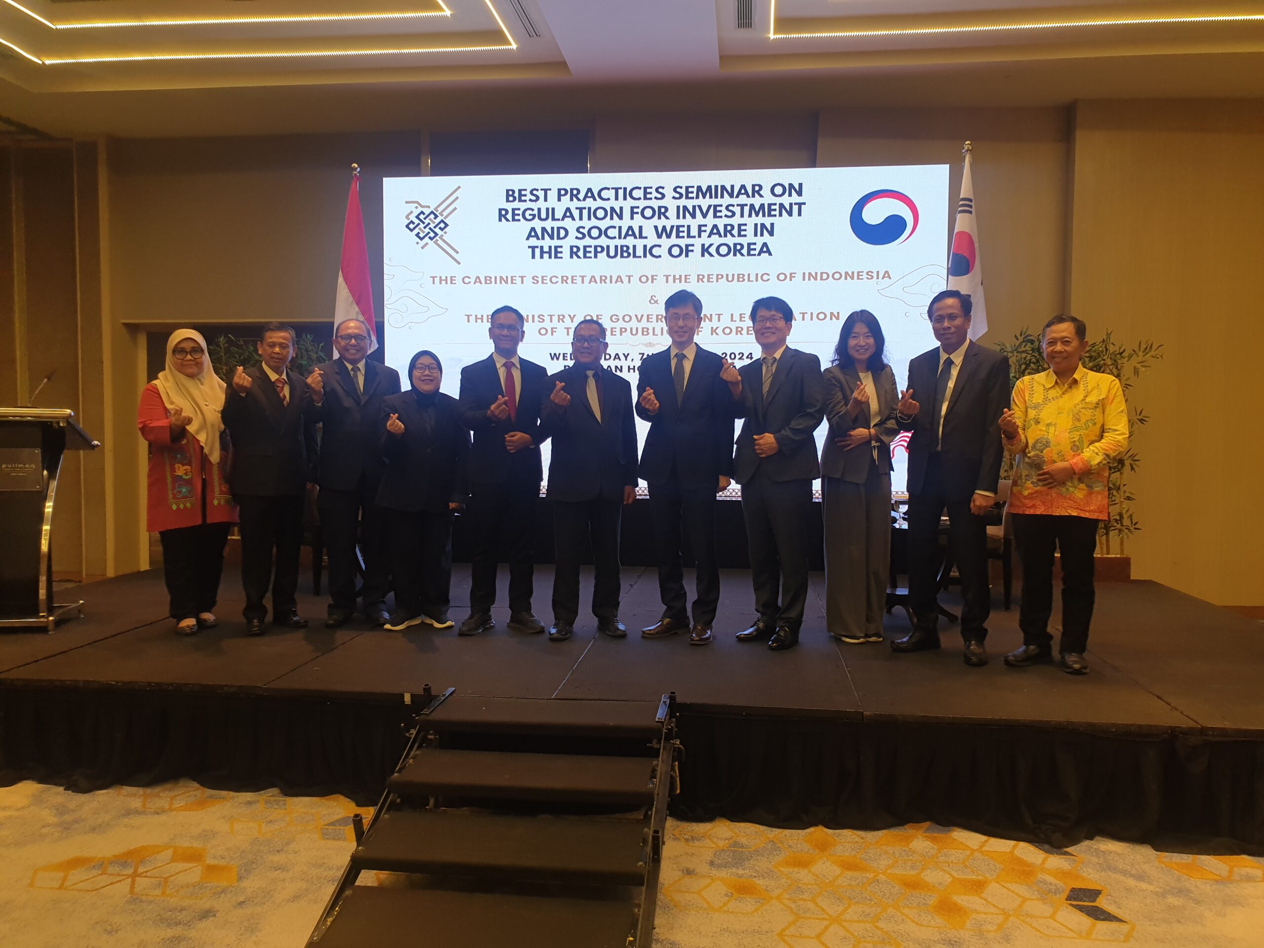 On the 7th, Kang-wook Yoon, Director of Legislation Coordination Policy, attended the ‘Best Practice Seminar on Korea’s Investment and Social Welfare Laws’ held by the Indonesian Cabinet Secretariat and delivered a congratulatory speech. He said that he hopes that through this seminar, Korea and Indonesia will understand each other’s economic investment and social welfare legislation status, and that cooperation between the Ministry of Government Legislation and the Indonesian Cabinet Secretariat will be further strengthened. Next, Legislative Review Officer Choi Jong-jin gave a presentation on the history of Korea’s social security legislation and major social security laws, and Legislative Officer Kim Hye-jeong gave a presentation on the Framework Act on Administrative Regulations and Korea’s regulatory innovation, respectively, and conducted a Q&A with participants.